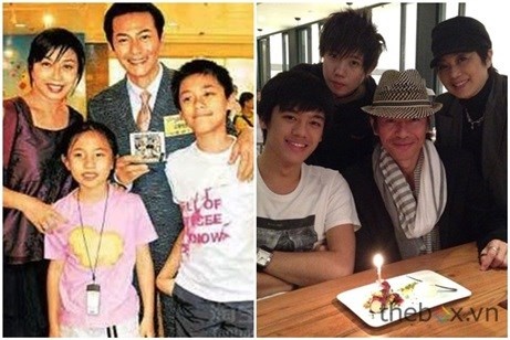 | Giang Hoa và vợ Mạch Khiết Văn cùng hai con trai. |