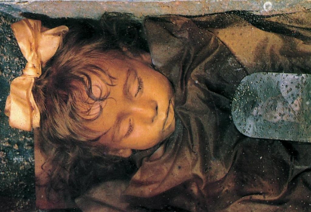 Rosalia Lambardo là em bé sinh năm 1918 ở Palermo, Italy. Cô bé qua đời vào ngày 6/12/1920 do viêm phổi. Cha của Roslia đau buồn trước cái chết của con gái, nên ông nhờ giáo sư Alfredo Salafia, chuyên gia về ướp xác, bảo quản thi hài cô bé. Kỹ thuật ướp xác của Alfredo tuyệt vời đến nỗi ngày nay thi thể bé Rosalia vẫn còn nguyên vẹn. |