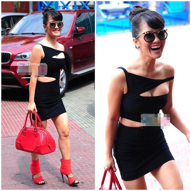 | Chung Thục Quyên bị lên án gay gắt về việc mặc hở quá mức. Trang phục do chính cô đặt may. |