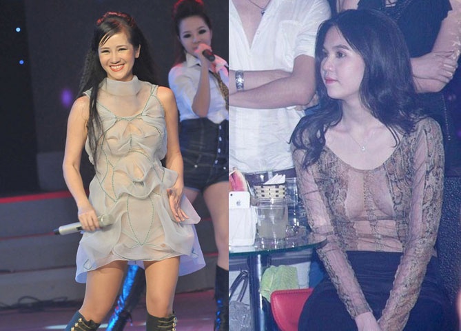 | Hồng Nhung và Ngọc Trinh cũng từng bị nhắc nhở về trang phục dễ gây hiểu nhầm. |