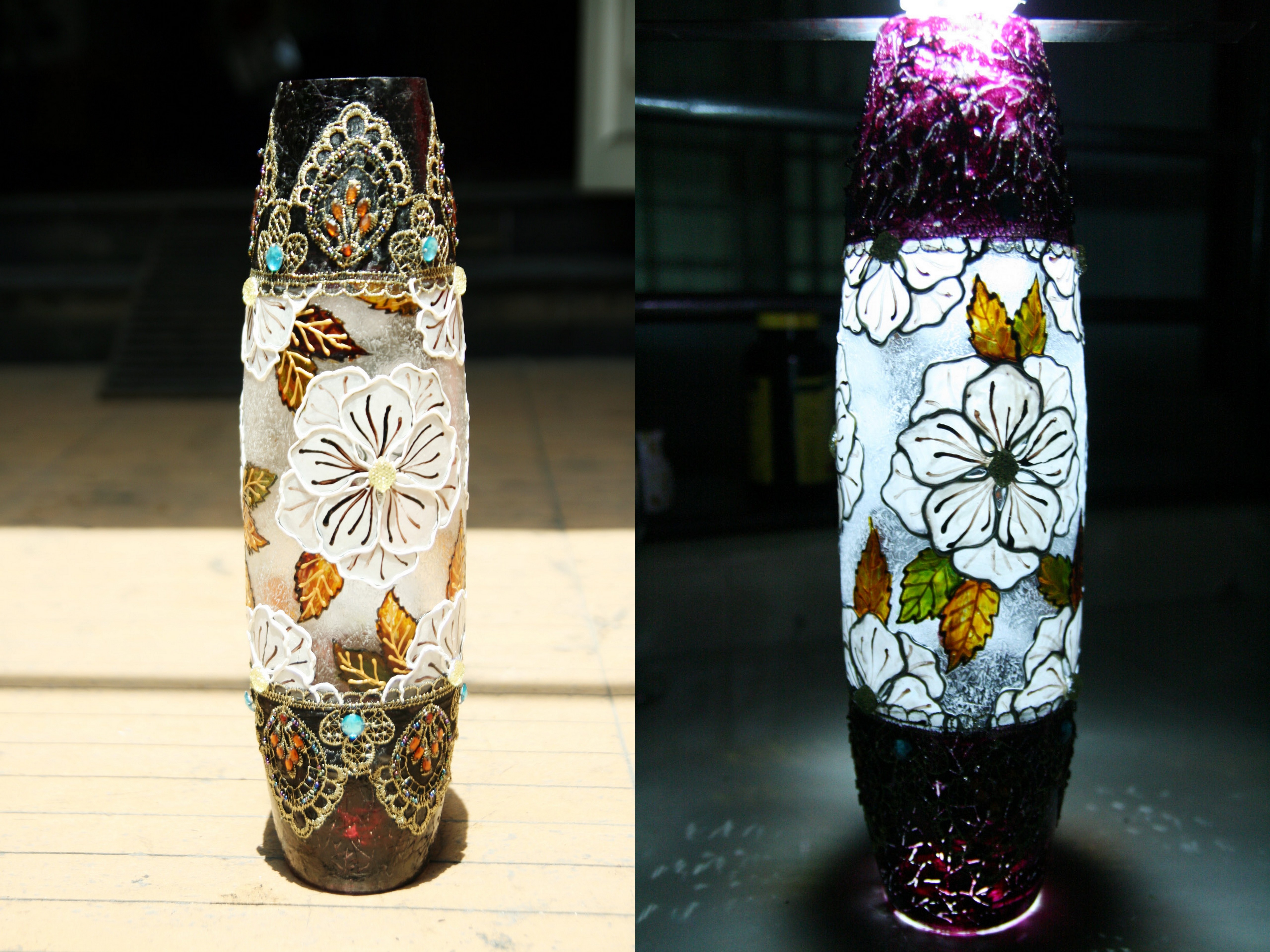 | Những chiếc bình thủy tinh đẹp hơn nhờ các họa tiết sinh động. Ảnh: KT. |