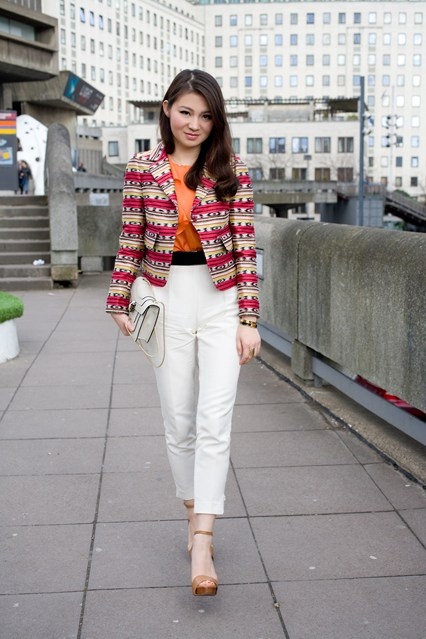 8. Jeans trắng: Đây là một item giản dị và dễ mix đồ, bạn có thể thỏa sức sáng tạo với nó. Áo phông màu sáng, túi da oversize, giày họa tiết da báo và áo khoác xanh kết hợp với jeans trắng sẽ đem đến cho bạn một bộ cánh cá tính mà vẫn sang trọng. |