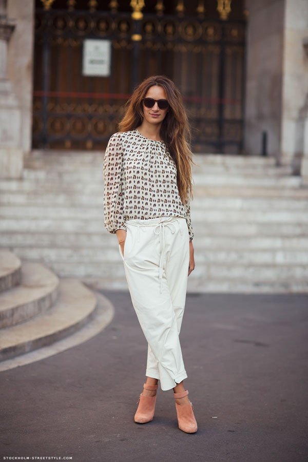 1. Mix với gam màu trung tính: Khi diện quần trắng, những item gam màu trung tính là lựa chọn phổ biến và an toàn cho bạn gái. Set đồ với áo sơ mi điệu đà, quần trắng, giầy cao gót và túi da toát lên sự nhẹ nhàng, tinh tế nhưng vẫn rất thời trang. |