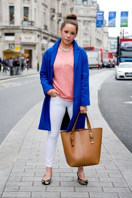 9. Mix với áo sắc màu: Nếu bạn thích nổi bật, trẻ trung, hãy kết hợp chiếc quần trắng với gam màu neon như áo màu vàng, túi này đỏ san hô. |