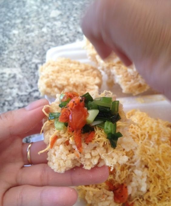 Cơm cháy đường Nam Kỳ Khởi Nghĩa, quận 1 được biết như điểm bán món này ngon nhất nhì Sài Gòn. Quán nổi tiếng, song nếu không được hướng dẫn, bạn sẽ không tìm thấy nơi đặt gánh hàng này. Ảnh: Anhem. |