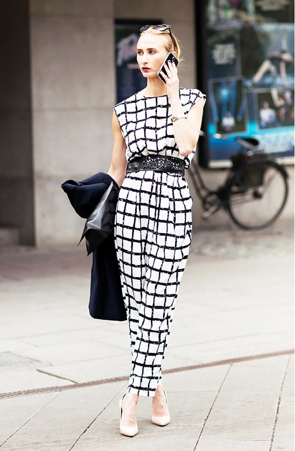 | Một gợi ý đầy cá tính với họa tiết ô cửa sổ cho jumpsuit. |
