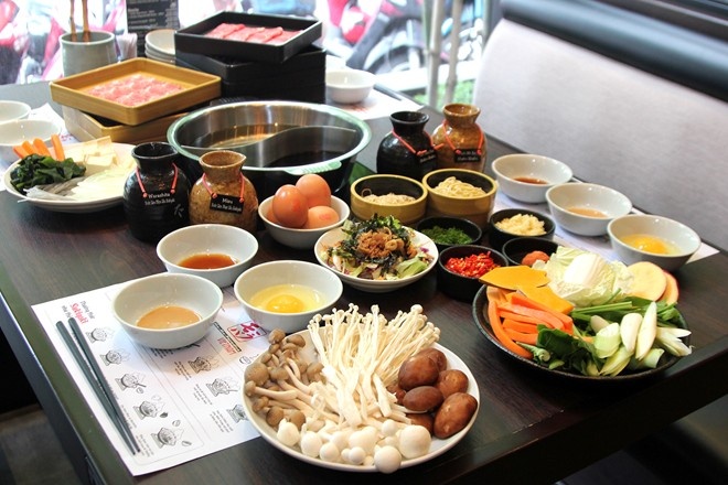 Buffet lẩu. Chỉ mới xuất hiện gần đây nhưng với hàng loạt điểm nhấn như thực phẩm hoàn toàn tự cung tự cấp, nhúng thịt bò chín vào trứng sống, ăn kèm collagen, ăn thỏa thích thịt heo, bò, không gian sang trọng tuyệt đẹp…, buffet lẩu hiện là lựa chọn hàng đầu của những thực khách đề cao thực phẩm tốt cho sức khỏe. |