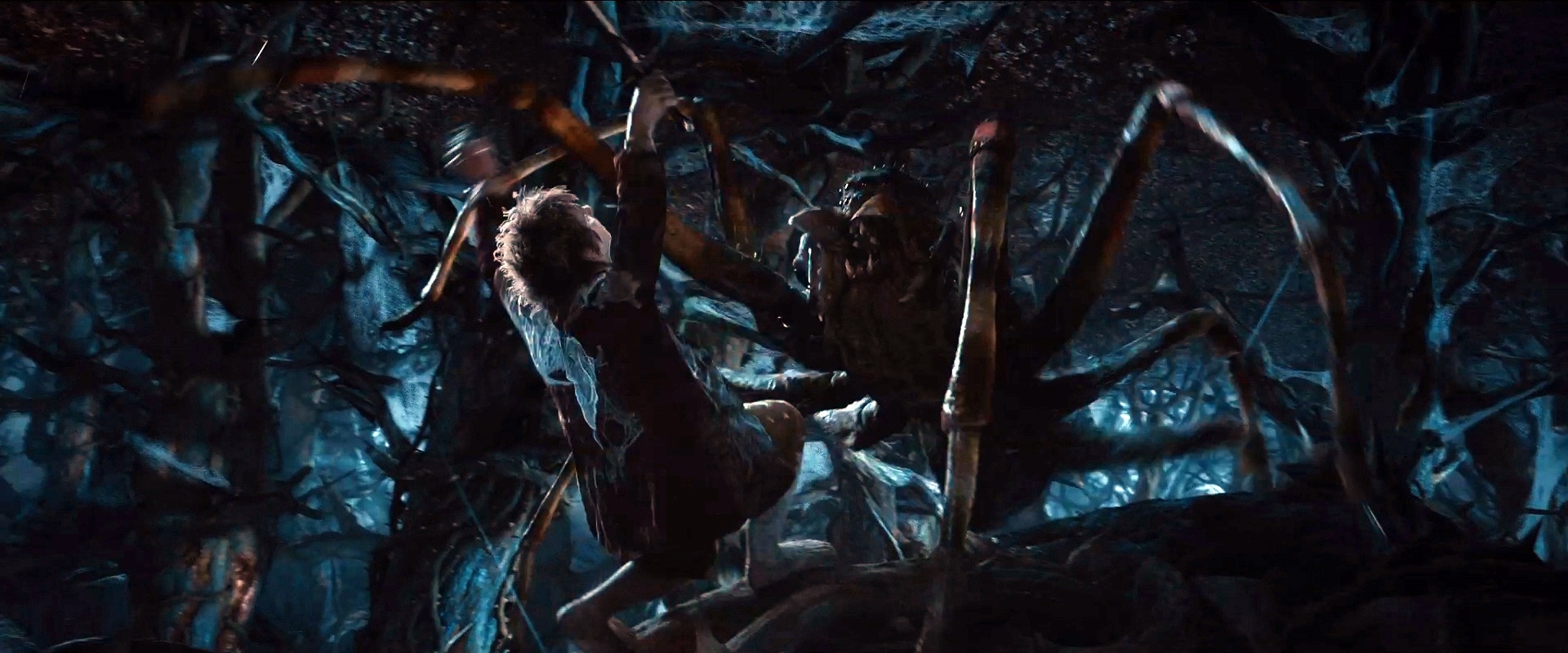 Nhện khổng lồ: Đây là loài sinh vật phổ biến tại Trung Địa và không khác lắm so với nhện thông thường, ngoại trừ kích cỡ khổng lồ. Nếu Bilbo Baggins gặp nhện khổng lồ trong rừng ở phần hai của The Hobbit, thì hậu duệ của ông là Frodo Baggins sau đó cũng phải chạm trán với con gái của nhện chúa Ungoliant là Shelob tại sào huyệt gần tháp Cirith Ungol. |