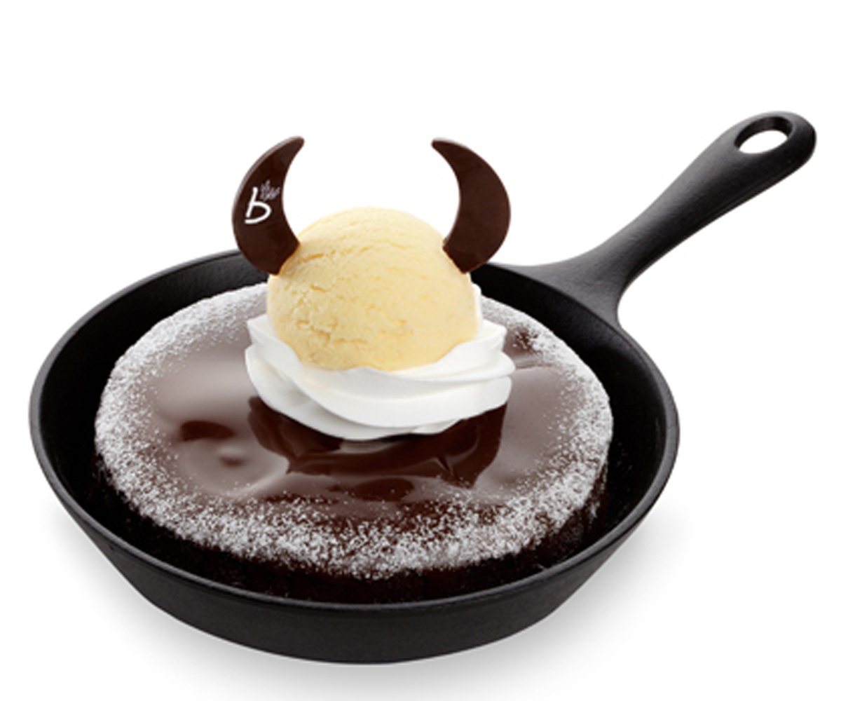 Với hai chiếc sừng xinh xắn, choco Devil Brownie khiến bạn liên tưởng đến những chú cừu hiền lành nằm bên máng cỏ hay con vật kéo xe cho ông già tuyết. Món bánh này gồm bánh brownie, kem tươi, Gelato và chocolate. |