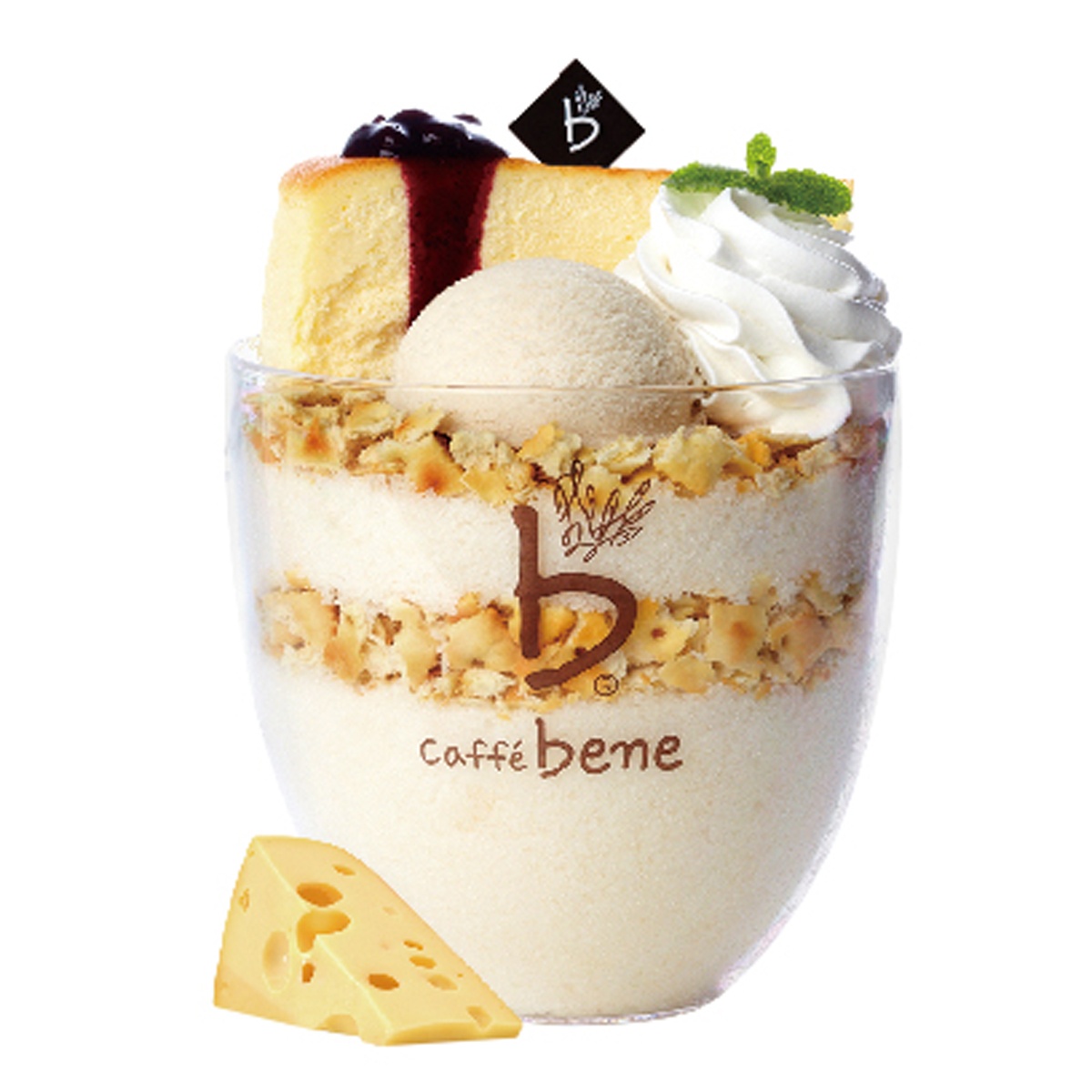 Có sự tham gia của các loại hạt, phô mai, kem và bánh nướng, Bene Cheesecake Bingsu làm hài lòng thực khách với vị giòn, béo của ngũ cốc, béo mềm của kem, thơm của phô mai. |