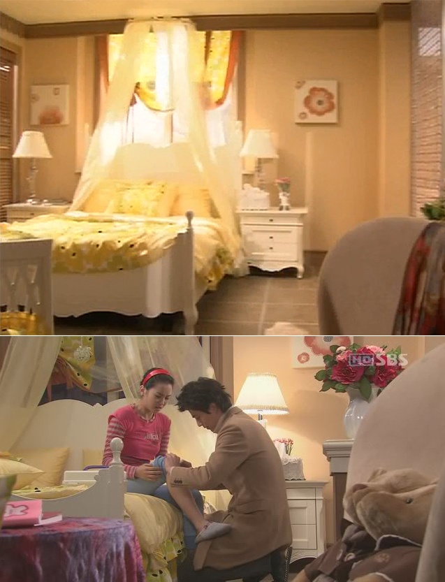 | Phòng ngủ của Hwang Tae Kyung trong You're Beautiful: Cũng như Chun Song Yi, Hwang Tae Kyung cũng là một anh chàng yêu bản thân khi treo một tấm ảnh khổng lồ của chính mình trên đầu giường. Không phải ai cũng đủ tự tin để có hành động tương tự. |