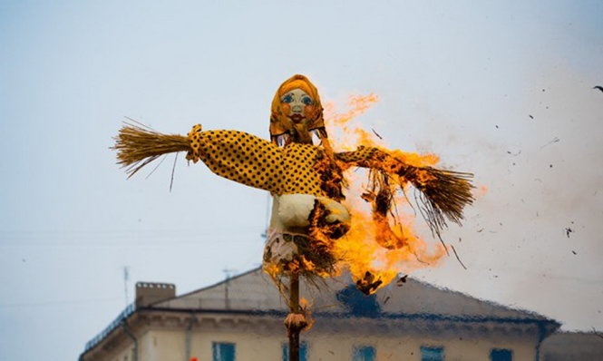 | Đốt bù nhìn để xua đuổi vận đen. |