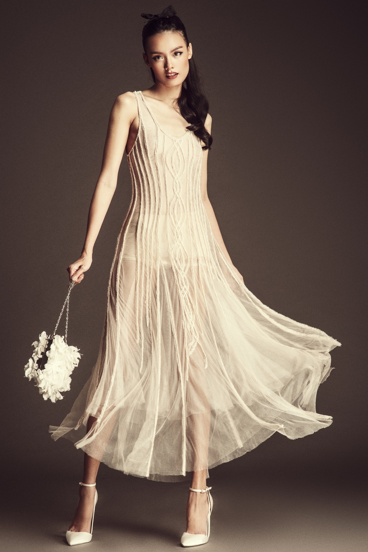 | Đầm voan mỏng sử dụng nhiều lớp vải trong suốt mềm mại tôn hình thể. |