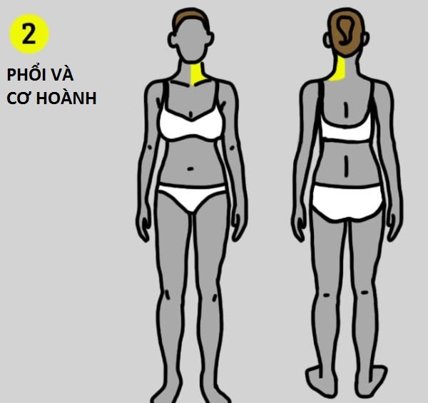 2. Phổi hoặc cơ hoành: Đau một bên cổ hoặc vai là dấu hiệu biểu hiện bệnh phổi và các vấn đề về cơ hoành. Nguyên nhân có thể do khó thở hoặc do các dây thần kinh tác động chạy từ cột sống, thông qua phổi, tới cơ hoành. |