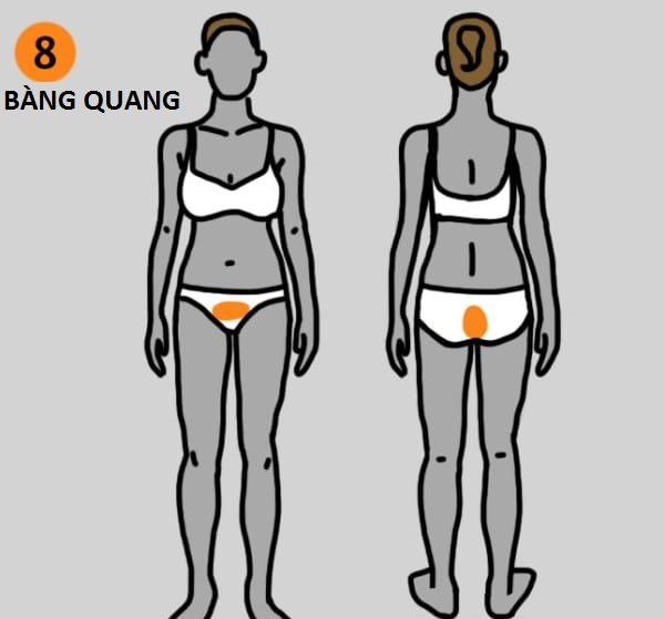 8. Bàng quang: Nếu đau ở vùng xương chậu thấp ở cả phía trước và phía sau, bạn nên nghĩ đến các vấn đề ở bàng quang. Nguyên nhân là do cơ quan này bị nhiễm trùng sẽ gây ra các cơn đau nghiêm trọng tại vùng thắt lưng. |