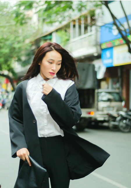 | Huyền Trang cũng là fan của kiểu blazer không đường eo này. |