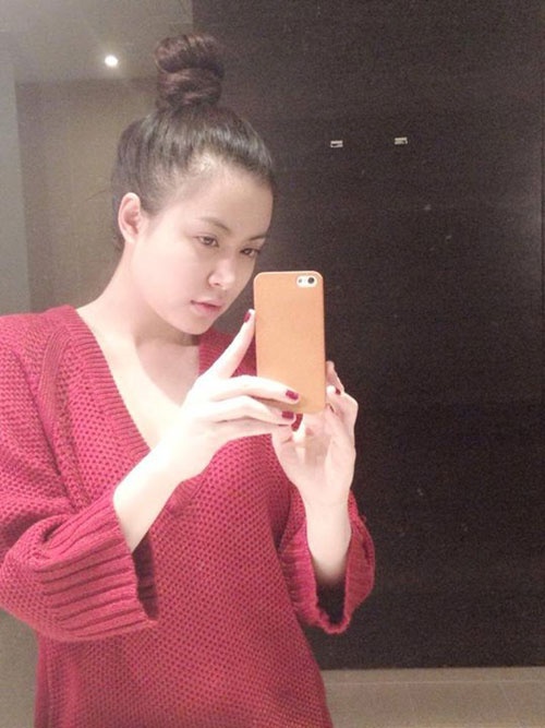 | Hoàng Thùy Linh với mẫu áo len rộng cổ V sâu hợp mốt. |
