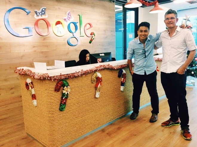| Nguyễn Hoàng Trung chụp ảnh tại văn phòng của Google tại Singapore. |