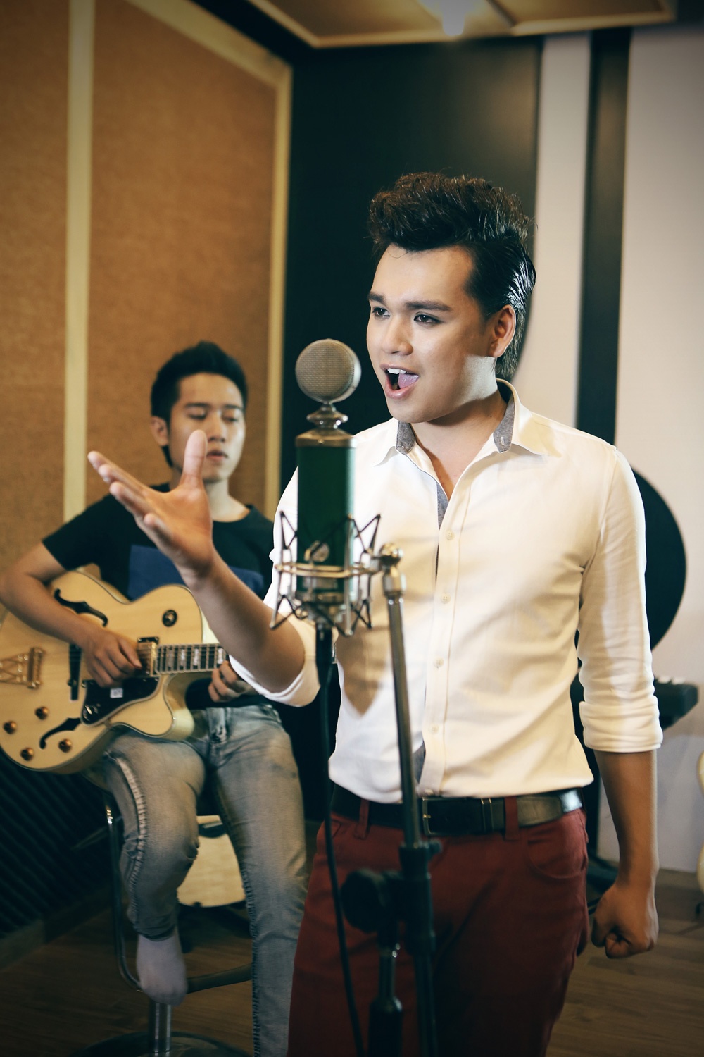 | Trung Quân nỗ lực trong phòng thu để làm mới 4 ca khúc gắn liền với tên tuổi các diva. (Xem clip TẠI ĐÂY). |