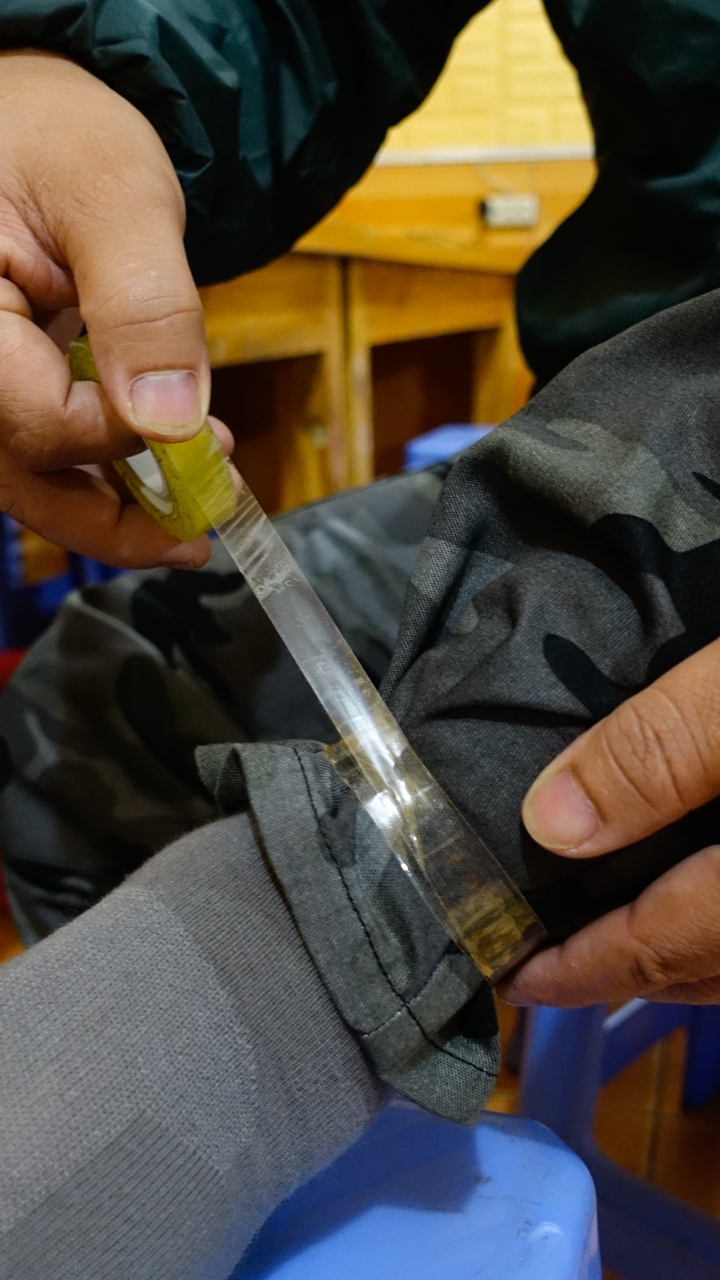 | Khoảng 17h30, những người cuối cùng lên được tới lán. Sau một ngày dầm mưa và bùn đất, chúng tôi phải hong đồ cho khô để mai còn tiếp tục chặng đường dài. |