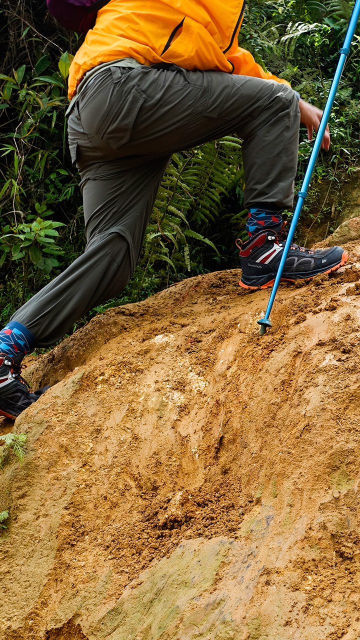 Càng về sau, thử thách tăng lên gấp bội. Chúng tôi phải đi qua những con dốc gần như dựng đứng. Cơn mưa tầm tã đêm trước khiến đường chưa khô nên việc leo không hề đơn giản.