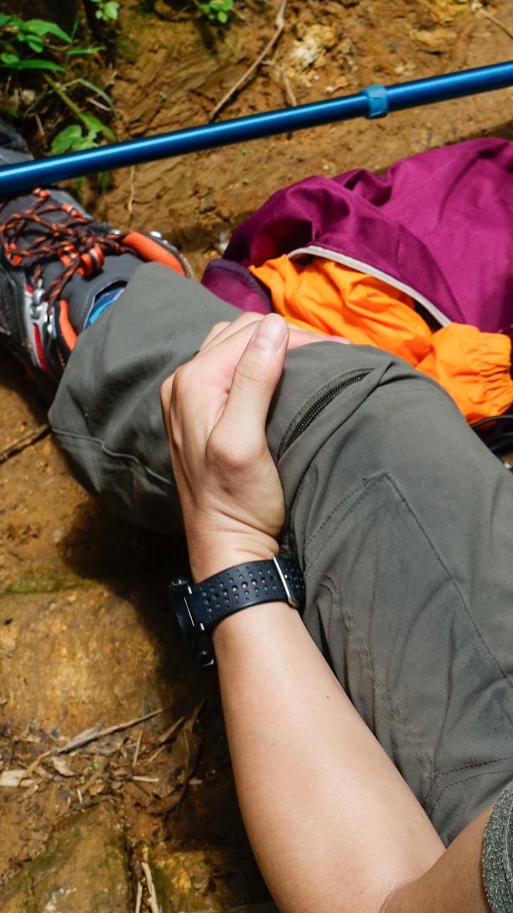 | Nhiều thành viên dường như đã quá sức chịu đựng. Những chấn thương bắt đầu xuất hiện. Hai vợ chồng trẻ trong đoàn có nhiều kinh nghiệm đi xa cũng không ngoại lệ. Họ ôm 2 đầu gối đã ê ẩm sau một ngày di chuyển quá sức. |