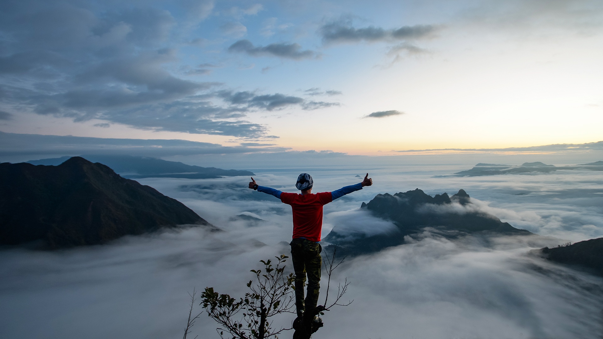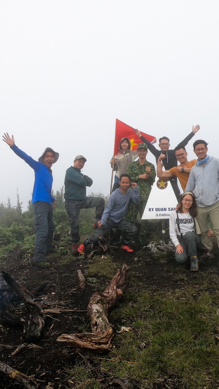 | Trải qua những cung đường tương tự của ngày hôm trước, cuối cùng đoàn cũng lên đến đỉnh. Cảm xúc vỡ oà trào dâng trong mỗi người. |