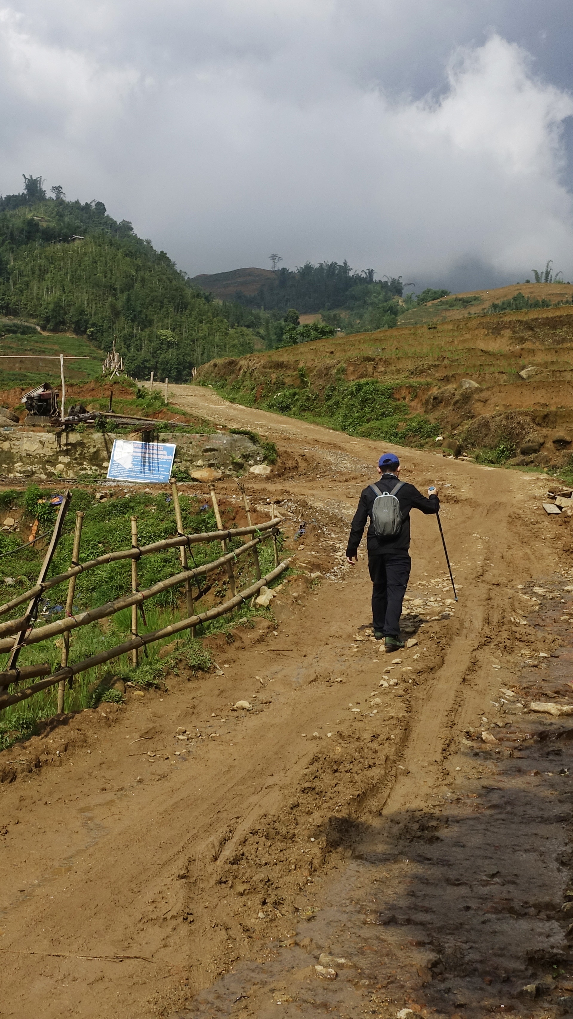 | Đoạn đường bùn đất này khiến đoàn phân hóa rõ về thể lực và tốc độ. Hai anh khỏe mạnh leo băng băng lên trước, bỏ lại đoàn mất hút phía sau. |