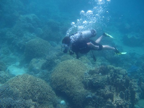 | Thanh Long ở vòng thử thách lặn dưới biển sâu. |
