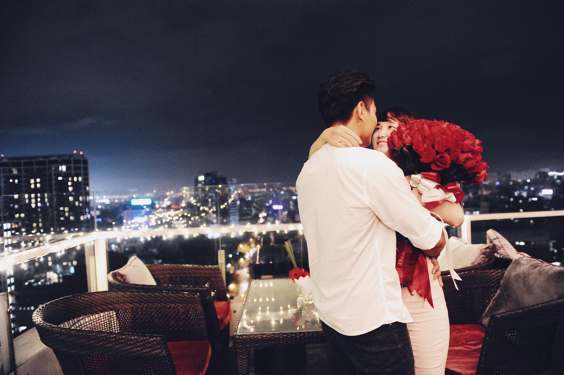 Màn cầu hôn của Nguyễn Tiến Tuấn (sinh năm 1990) với Nguyễn An Khanh (sinh năm 1991) diễn ra trong không gian lãng mạn của quán cà phê ngoài trời tại Hà Nội.