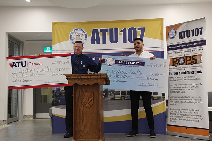 Theo CBC, ATU Local 107 và ATU Canada - đại diện thành phố cảng Hamilton, các nhân viên vận tải và lái xe buýt trên toàn quốc - mới đây trao tặng hai tấm sec trị giá 2.000 USD cho Godfrey Coutto vì hành động nhân ái của anh.