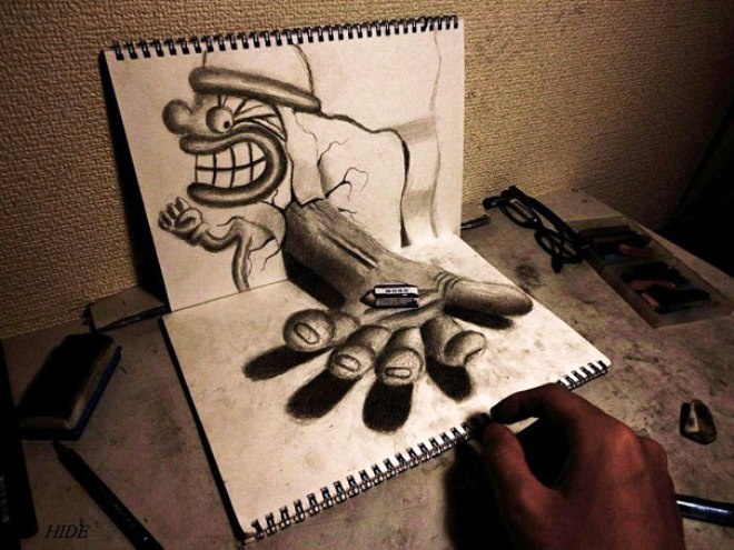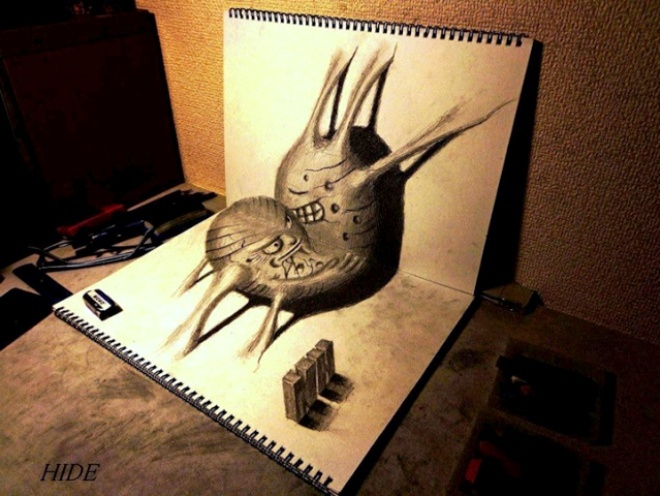 | Chỉ với giấy vẽ và bút chì, Hideyuki khiến người xem trầm trồ trước những bức vẽ sống động và đầy tính sáng tạo. |