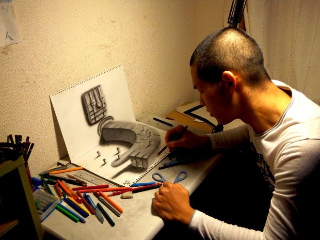 | Các tác phẩm 3D chân thực này là kết tinh từ óc sáng tạo, mẹo chọn góc, sự đổ bóng tài tình và niềm đam mê nghệ thuật của chàng trai Nhật Bản. |