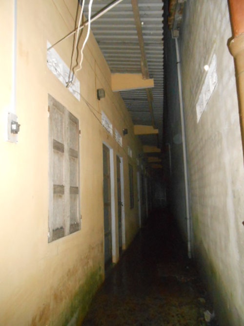 | Khu nhà trọ vắng tanh, ngập nước. |