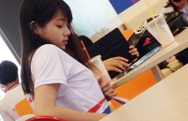 | Khoảnh khắc hồn nhiên của nữ sinh ĐH Tôn Đức Thắng. |