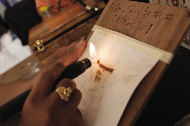 Chàng trai Sài thành cho hay: “Lần đầu thử nghiệm với bật lửa, mình làm cháy không biết bao nhiêu giấy, những nét vẽ không được mềm mại như ý muốn. Cuối cùng, mình nghiên cứu làm ra cây bút chuyên vẽ tranh lửa. Bút gồm ống chứa gas, bộ phận đánh lửa, nút hiệu chỉnh lửa lớn nhỏ".