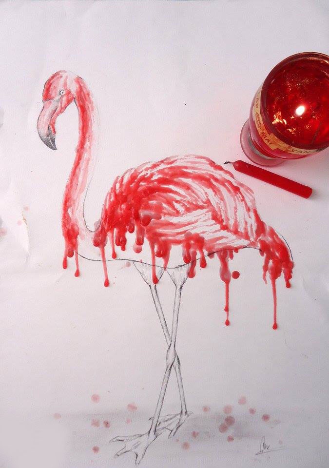 | Chim hồng hạc được vẽ bằng sáp nến. |