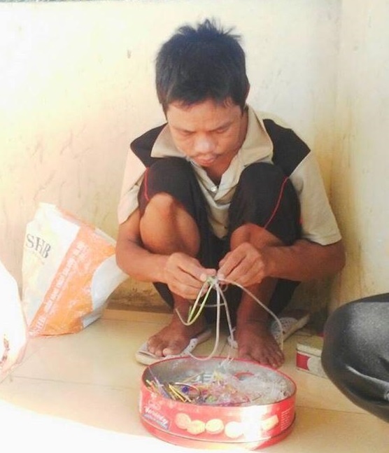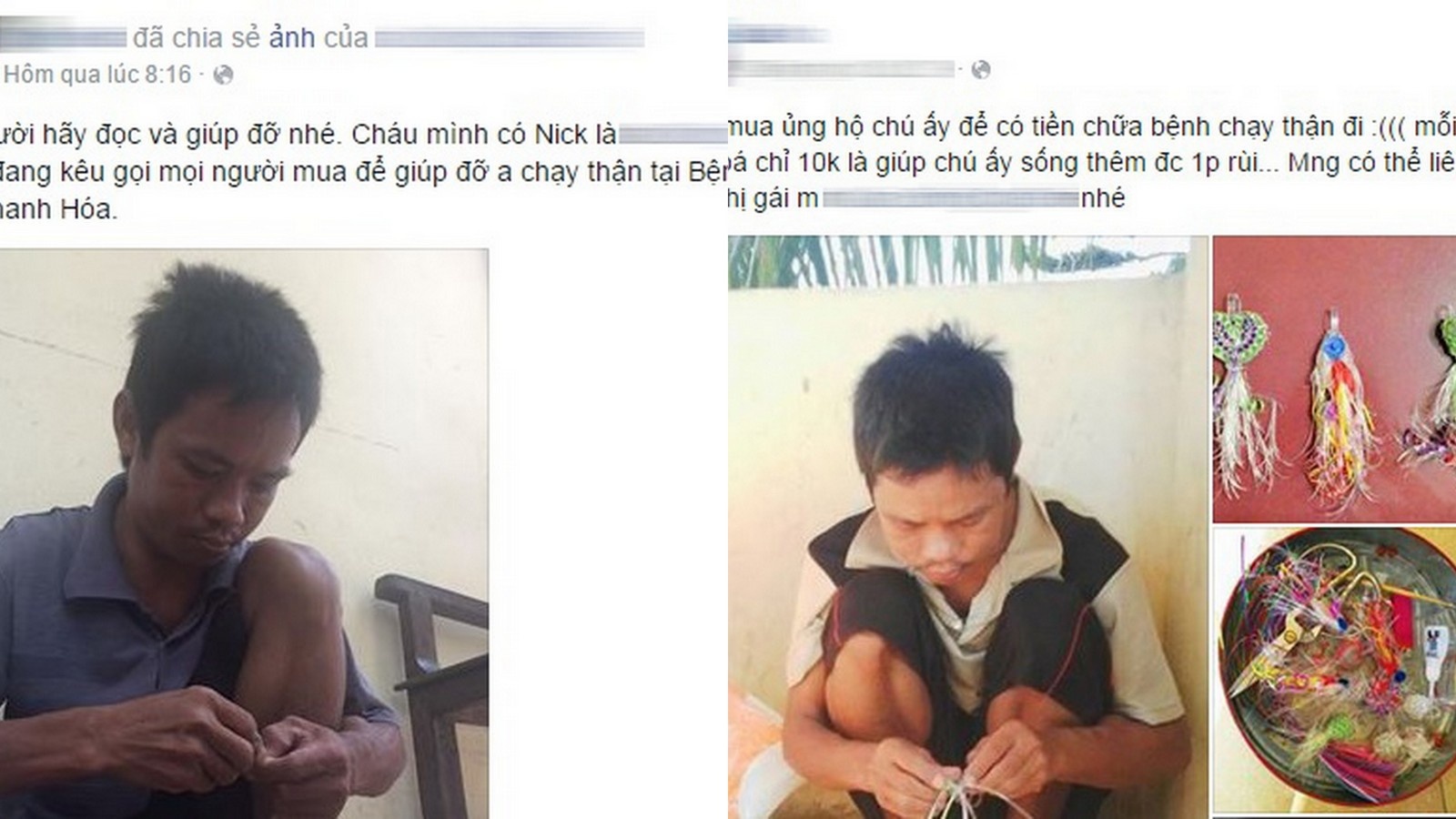 "Để kiếm tiền chạy thận, hằng ngày anh rao bán sản phẩm móc khóa khắp bệnh viện, khu vực nhà dân xung quanh. Một ngày chỉ bán được 1-2 cái, không đủ anh trang trải viện phí, thuốc thang. Nhiều hôm anh không có tiền để ăn rồi tụt huyết áp. Đến khi chạy thận, huyết áp giảm, cộng thêm bệnh động kinh, mấy lần anh suýt chết hụt, may mắn được bác sĩ cấp cứu kịp thời" - Hồng Nhung kể lại.