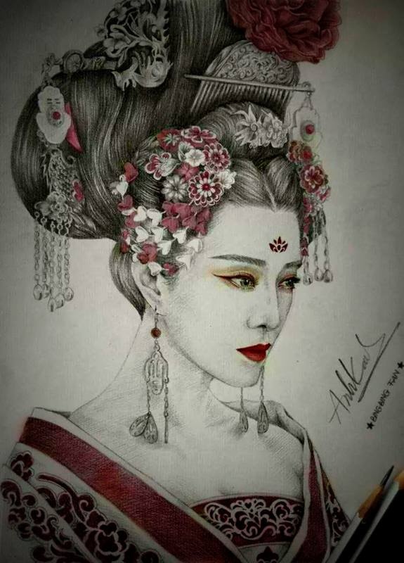 Ăn theo sức hút này, Lê Anh Kiệt sinh năm 1996 (quê Đồng Tháp) đang là học sinh lớp 12 trường THPT Hùng Vương, TP.HCM đã giới thiệu đến người xem bức ảnh khắc hoạ chân dung Võ Tắc Thiên dưới tạo hình của Phạm Băng Băng.