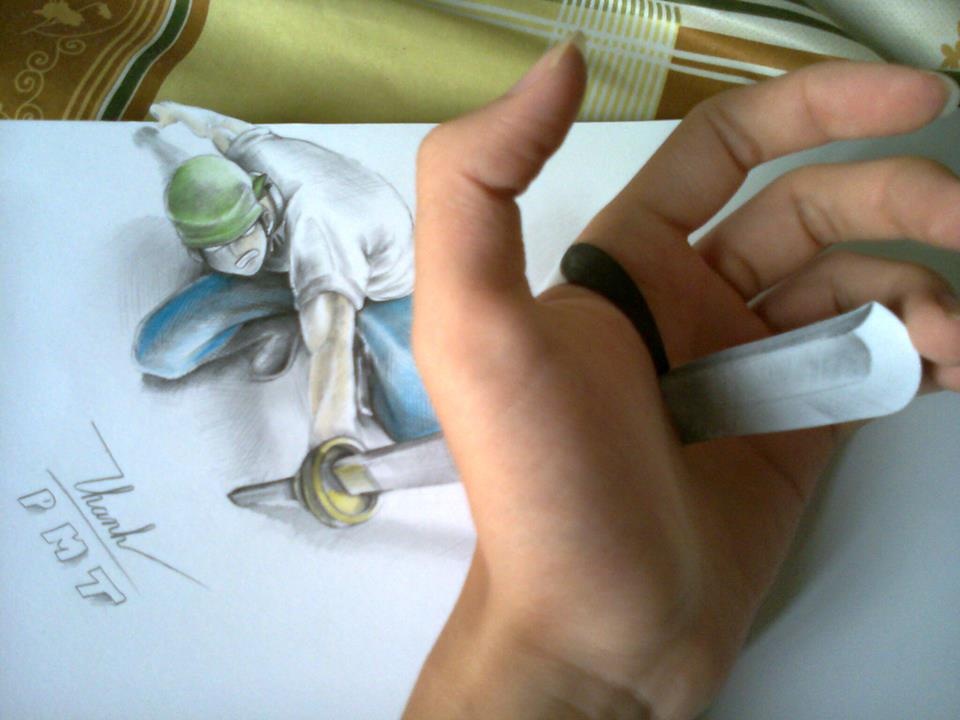 Thành cho biết thêm, bức tranh 3D trên được cậu vẽ trong vòng một tiếng. Đam mê vẽ từ nhỏ, nhưng Thành biết đến vẽ 3D từ năm ngoái. Không qua một trường lớp đào tạo nào, chủ yếu 9x tự tìm tòi, học hỏi trên mạng về cách vẽ. Các tác phẩm của Thành đều thực hiện hoàn toàn bằng chì màu. Trước đó, Thành cũng có một vài tác phẩm 3D khác gây chú ý cộng đồng mạng.