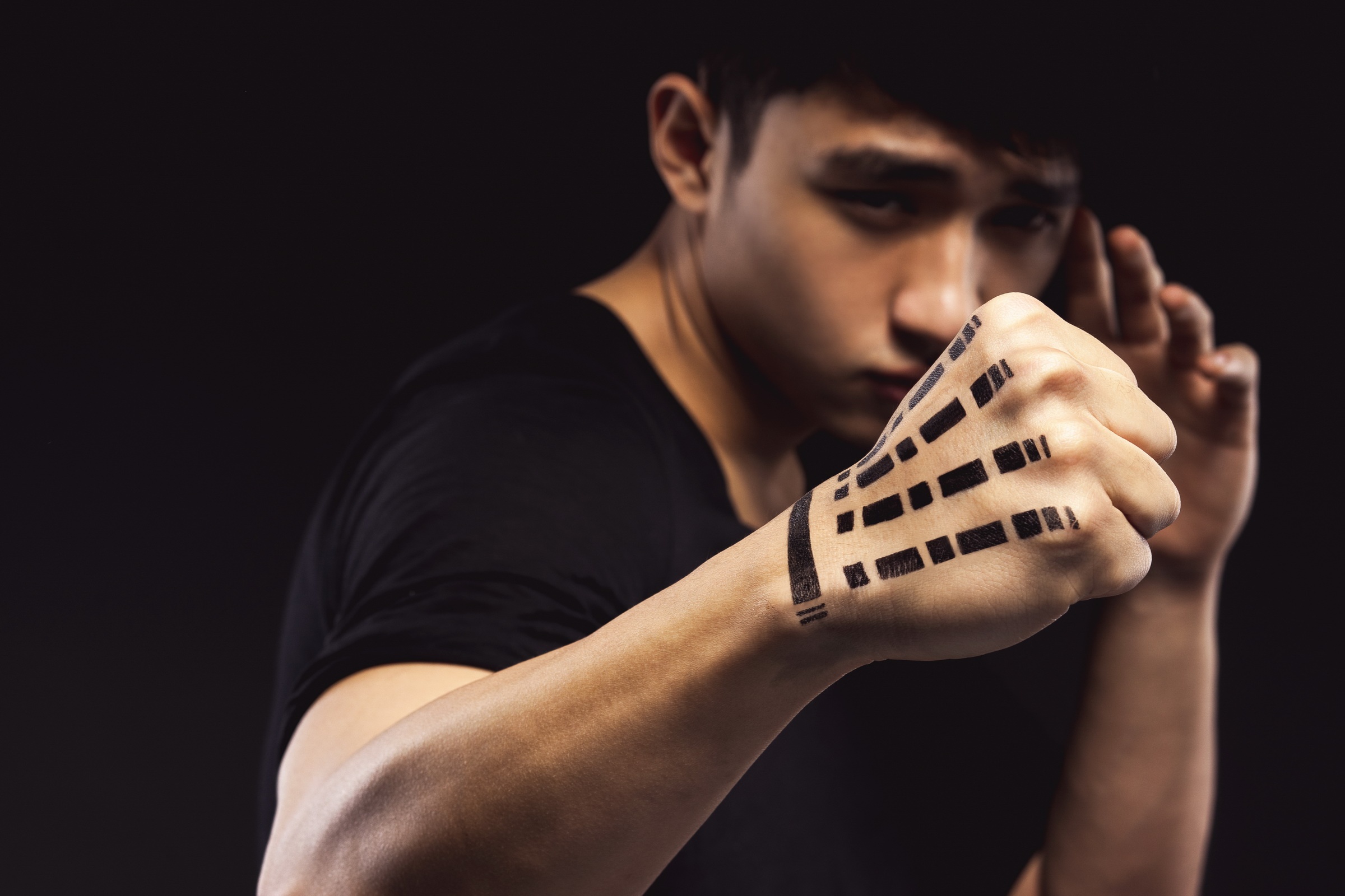 Trong khi đó, hình xăm trên cánh tay và mu bàn tay thể hiện sự dũng mãnh của chiến binh Dauntless.
