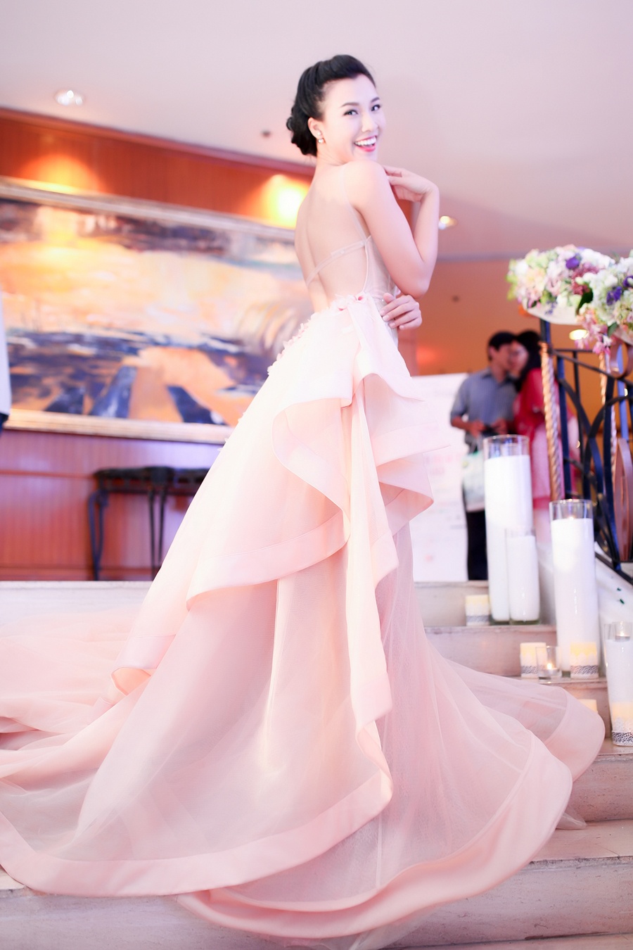| Mỗi lần tham dự sự kiện, ra mắt báo giới, nữ MC đều rất chỉn chu và chuẩn bị trang phục kỹ lưỡng. Thiết kế đầm hồng pastel được NTK Anh Thư may riêng rất phù hợp với vẻ đẹp thanh lịch, tao nhã của Hoàng Oanh. |
