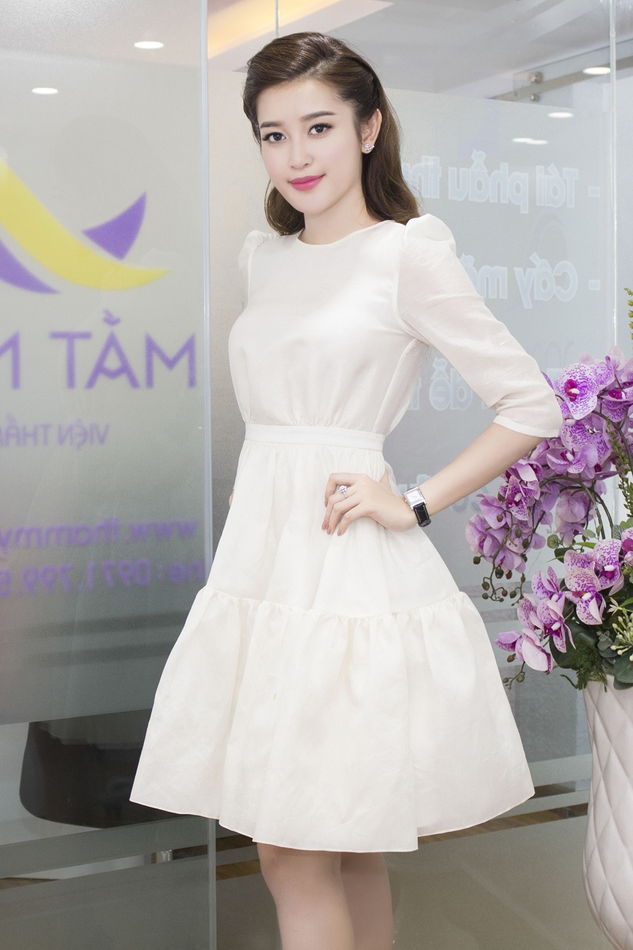 Á hậu Huyền My đẹp thanh lịch với đầm trắng