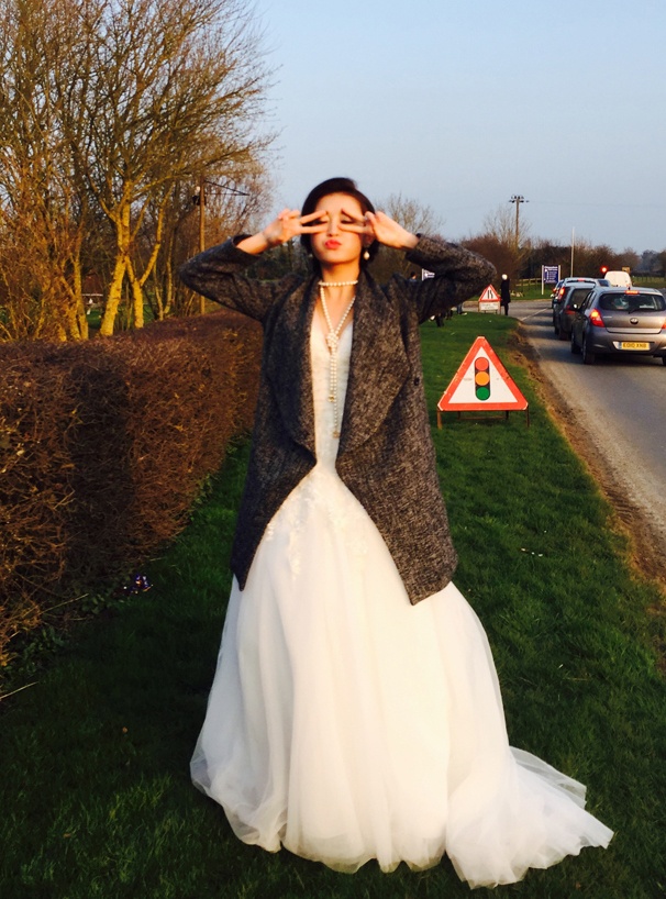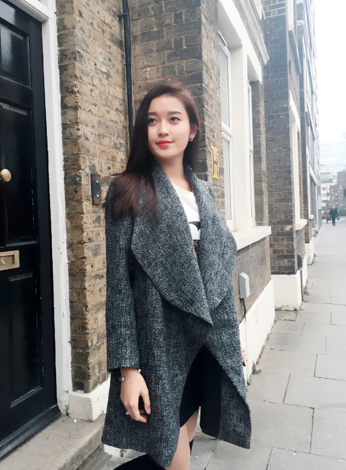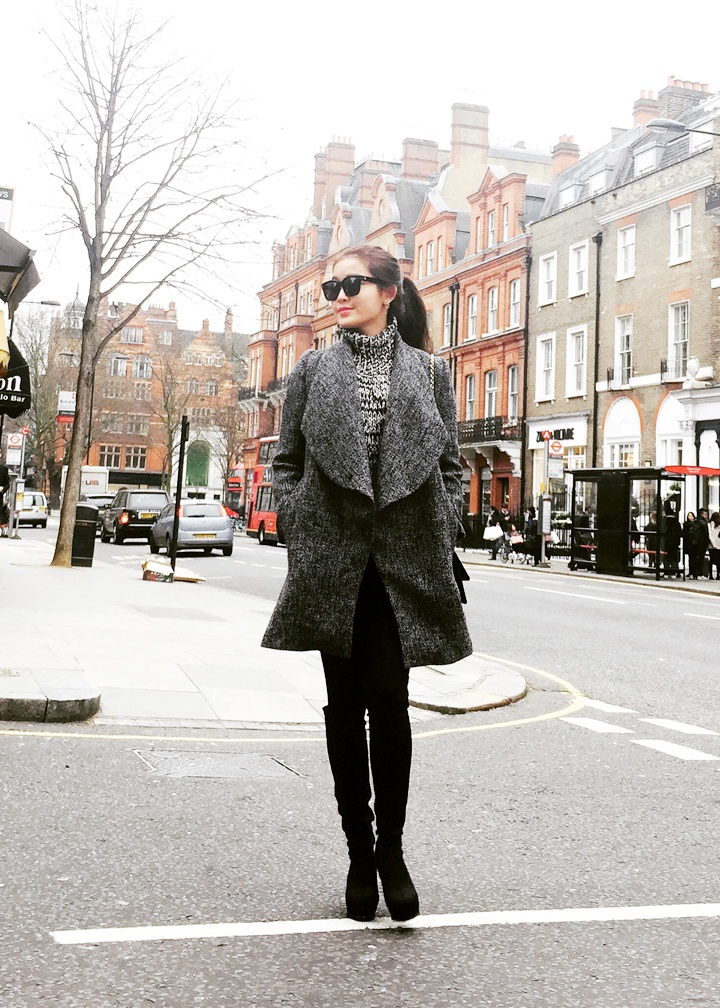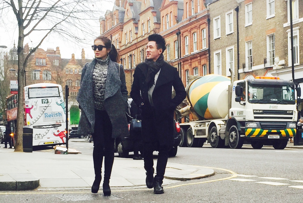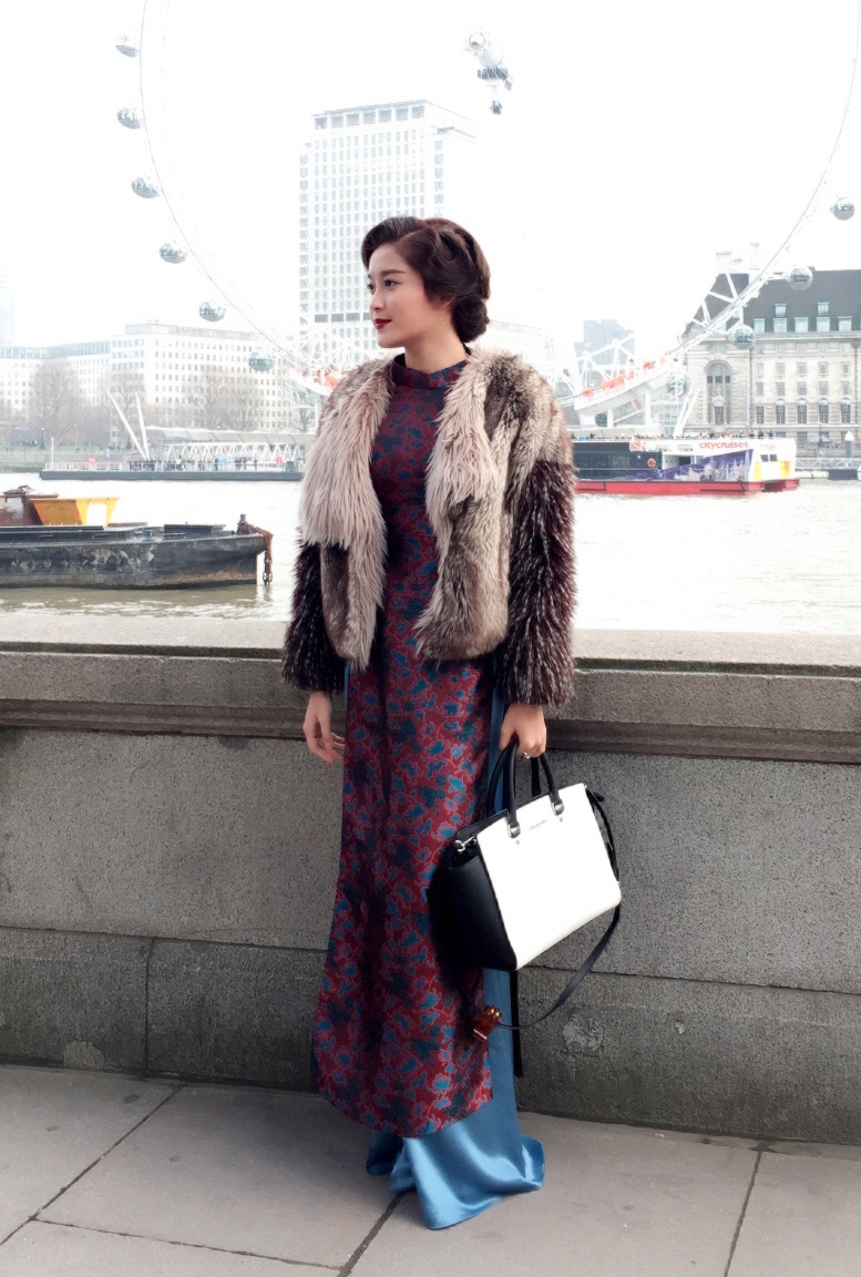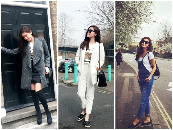 Thời tiết tại Anh vẫn còn rất lạnh dù đã vào mùa xuân nên á hậu chuẩn bị khá nhiều trang phục ấm áp.