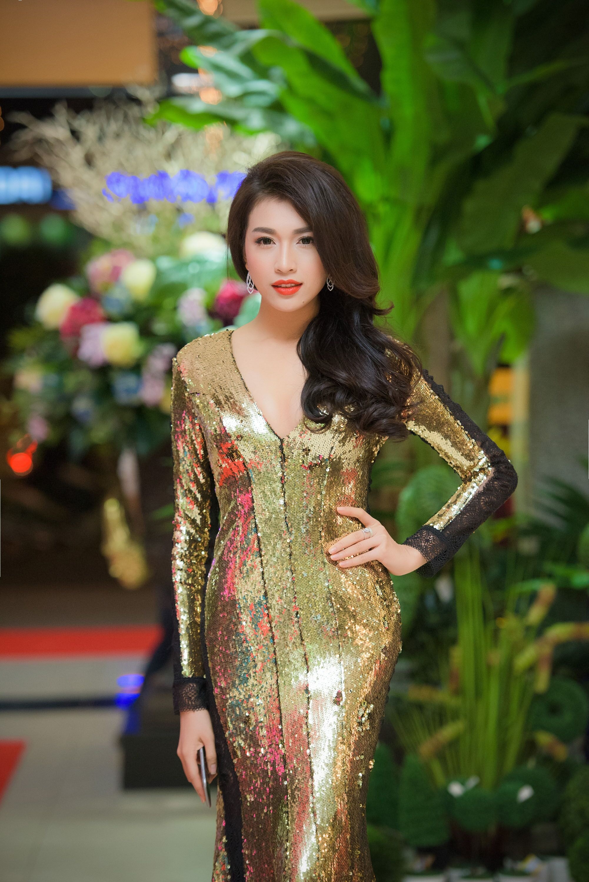 | Tối 14/12, Lệ Hằng đáp chuyến bay từ TP HCM ra Hà Nội, tham dự sự kiện khai trương của một nhãn hàng nội thất. Á hậu Hoàn vũ Việt Nam 2015 xuất hiện nổi bật trong bộ đầm bó sát, ánh sequin gợi cảm. Đi kèm trang phục tôn dáng là bộ phụ kiện đắt tiền gồm nhẫn và hoa tai kim cương, được chế tác tại Việt Nam bởi nhà thiết kế Ngọc Đoàn (thương hiệu Leman Jewels). |