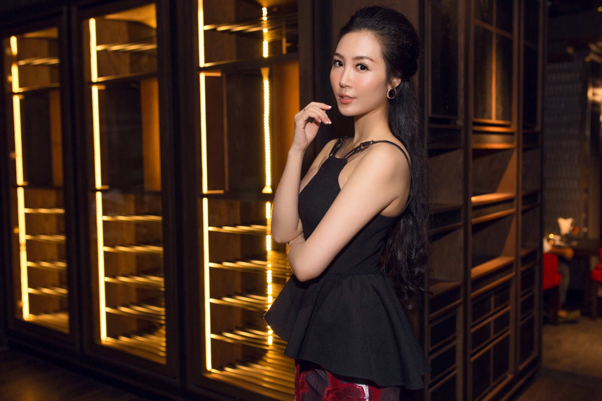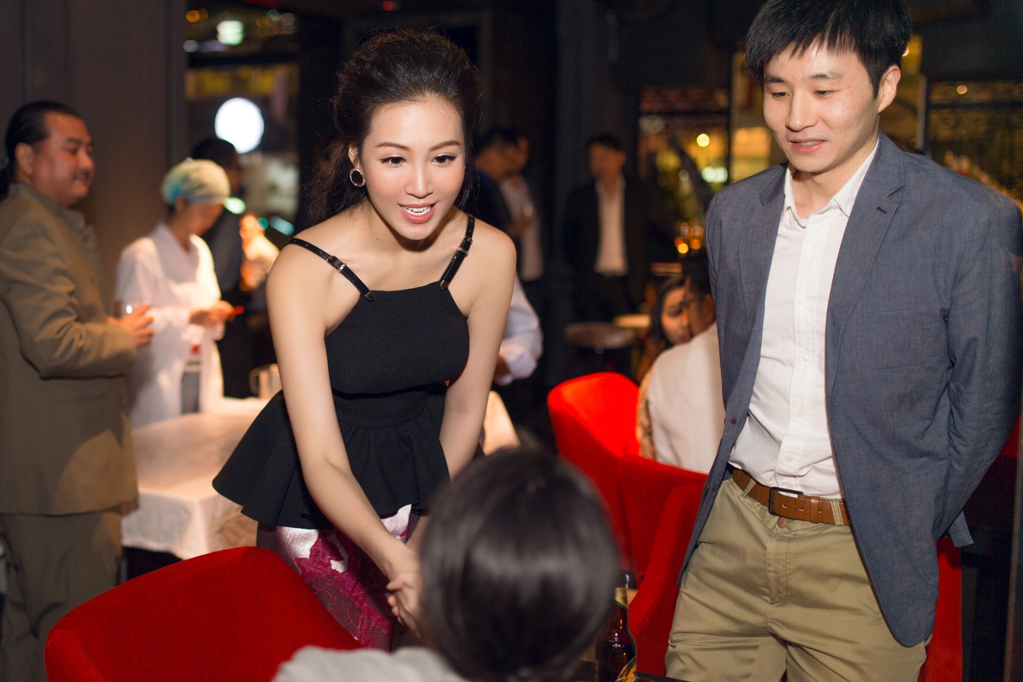 | Á hậu Hoa hậu hoàn vũ 2015 Lệ Hằng trẻ trung đến chúc mừng Thùy Trang lên chức bà chủ. |