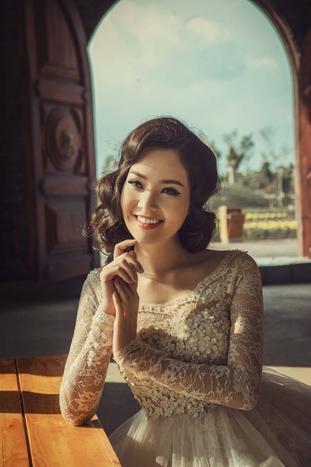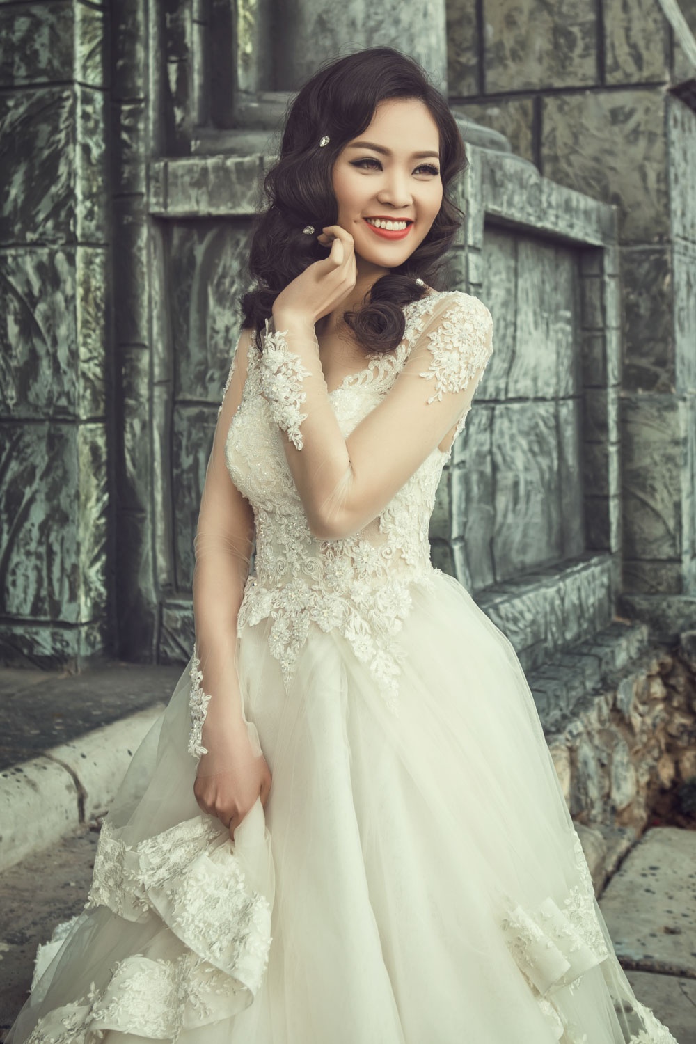 Biên tập viên của chương trình "Chuyển động 24h" xinh đẹp và đầy quyến rũ với những thiết kế váy cưới theo phong cách cổ điển.