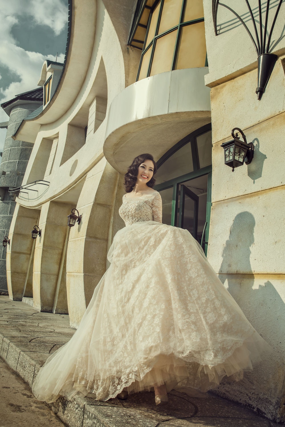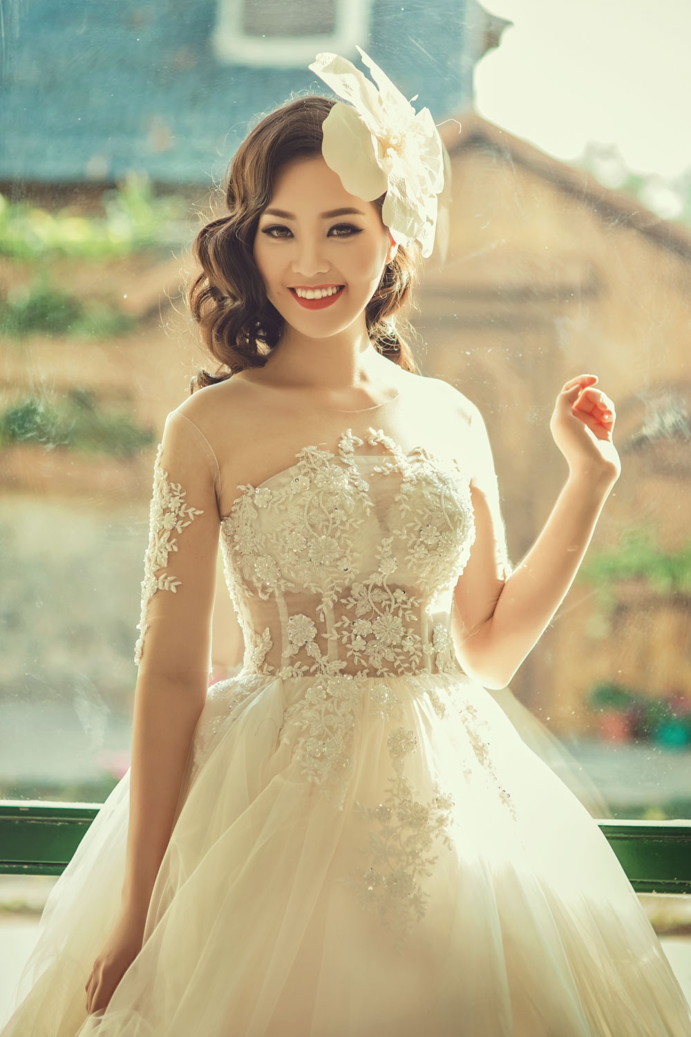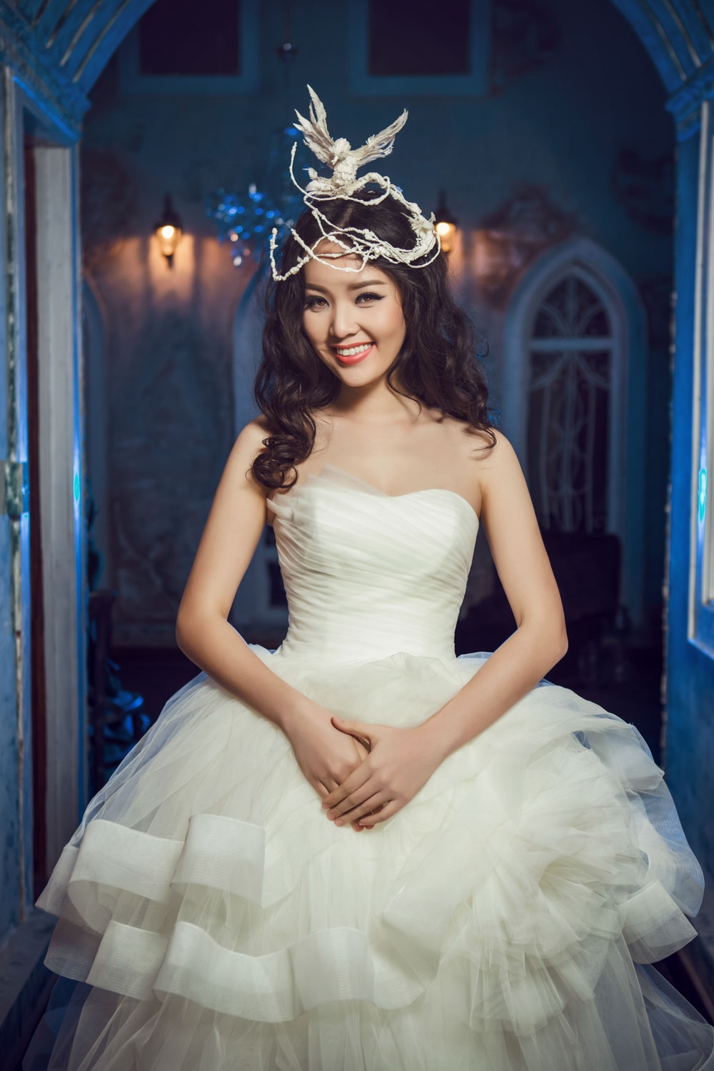 | Trong bộ hình mới nhất, Á hậu Thụy Vân hóa thân thành cô dâu lộng lẫy với trang phục váy cưới của nhà thiết kế John Kim. |