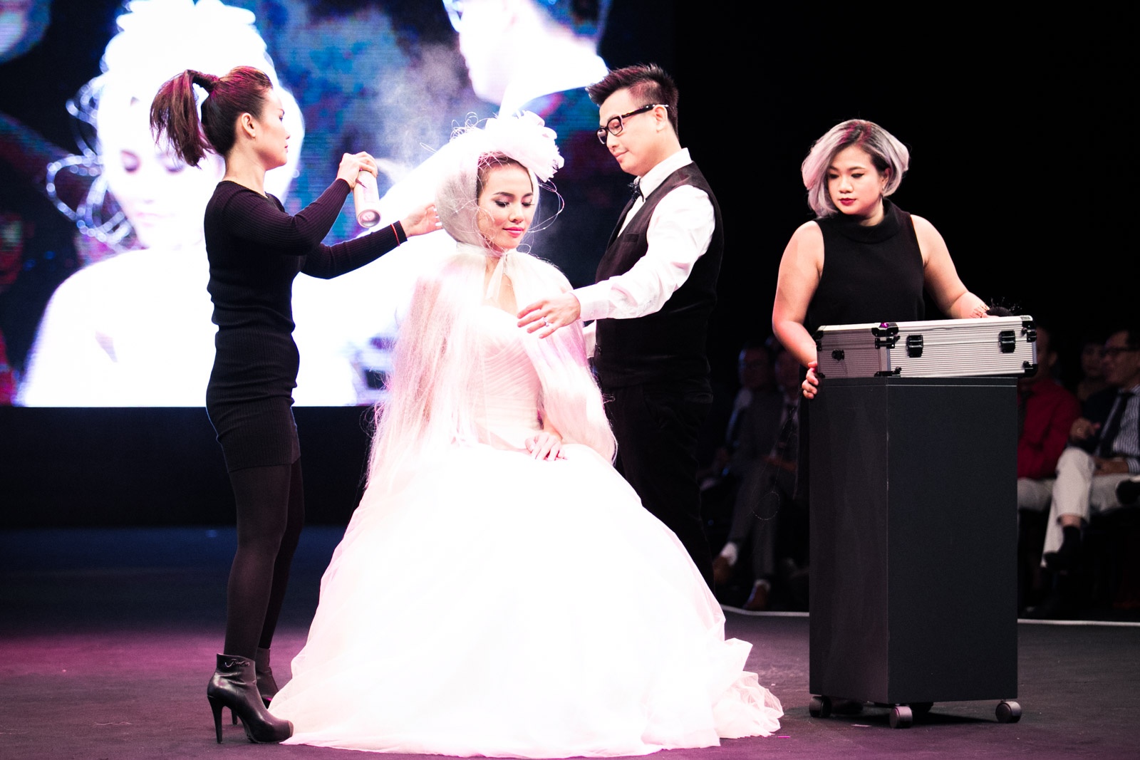 | Bộ sưu tập Huyền thoại của Don Hậu giới thiệu 15 kiểu tóc độc lạ được sáng tạo bằng hai yếu tố kỹ thuật và thẩm mỹ. |