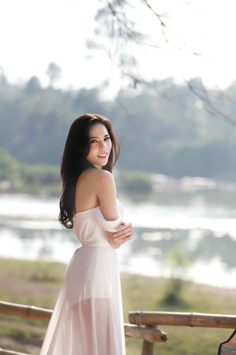 | Bối cảnh thiên nhiên vào sáng sớm mang đến nét tươi sáng, lãng mạn, để người đẹp có thêm cảm xúc, hòa mình vào những khung hình cuốn hút người xem. |
